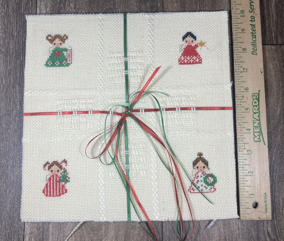 Handmade Embroidered Christmas Holiday Wall Decoration Angels Unframed 10"x10"