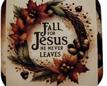 Bring warmth and faith to your home this autumn with this handmade glossy refrigerator magnet featuring the beloved saying ?Fall for Jesus ? He Never Leaves.?