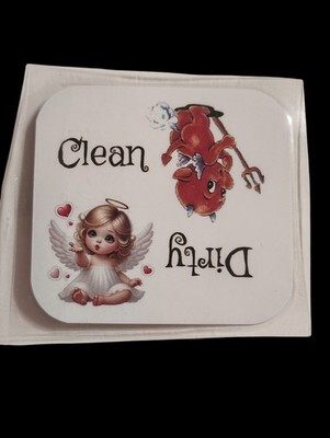 ? Handmade Glossy Laminated Magnet ? Dirty/Clean Angel Devil Dishwasher Magnet ? Waterproof Funny