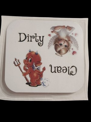 This handmade glossy laminated magnet brings a playful twist to your kitchen routine! Featuring a sweet angel on one side and a mischievous little devil on the other, it?s the perfect way to keep track of whether your dishes are clean or dirty.