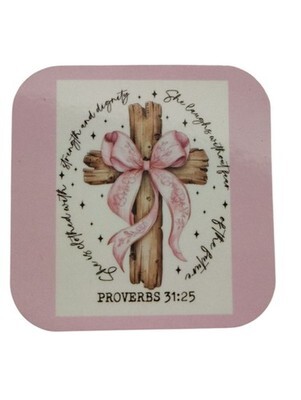 Designed with a rustic wooden cross wrapped in a soft pink ribbon, this magnet symbolizes faith, strength, and feminine beauty ? a perfect gift for mothers, sisters, or women of faith.
