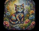 ?? Handmade Glossy Magnet ? Tranquil Garden Cat ? Floral Rainbow Art Magnet