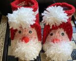 Handmade Santa Claus booties for babies in red, pink and white. Soft and cozy, they are perfect for cold days and create a festive mood. Each pair of booties is made with love and care, providing comfort and style for your baby. A great choice for New Year's holidays and gifts.