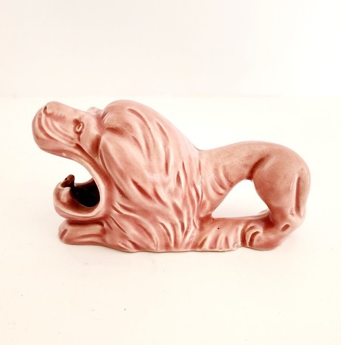 Handmade Lion Pink Ceramic Artist Signed Limited Numbered 1181/2544 Vintage E12