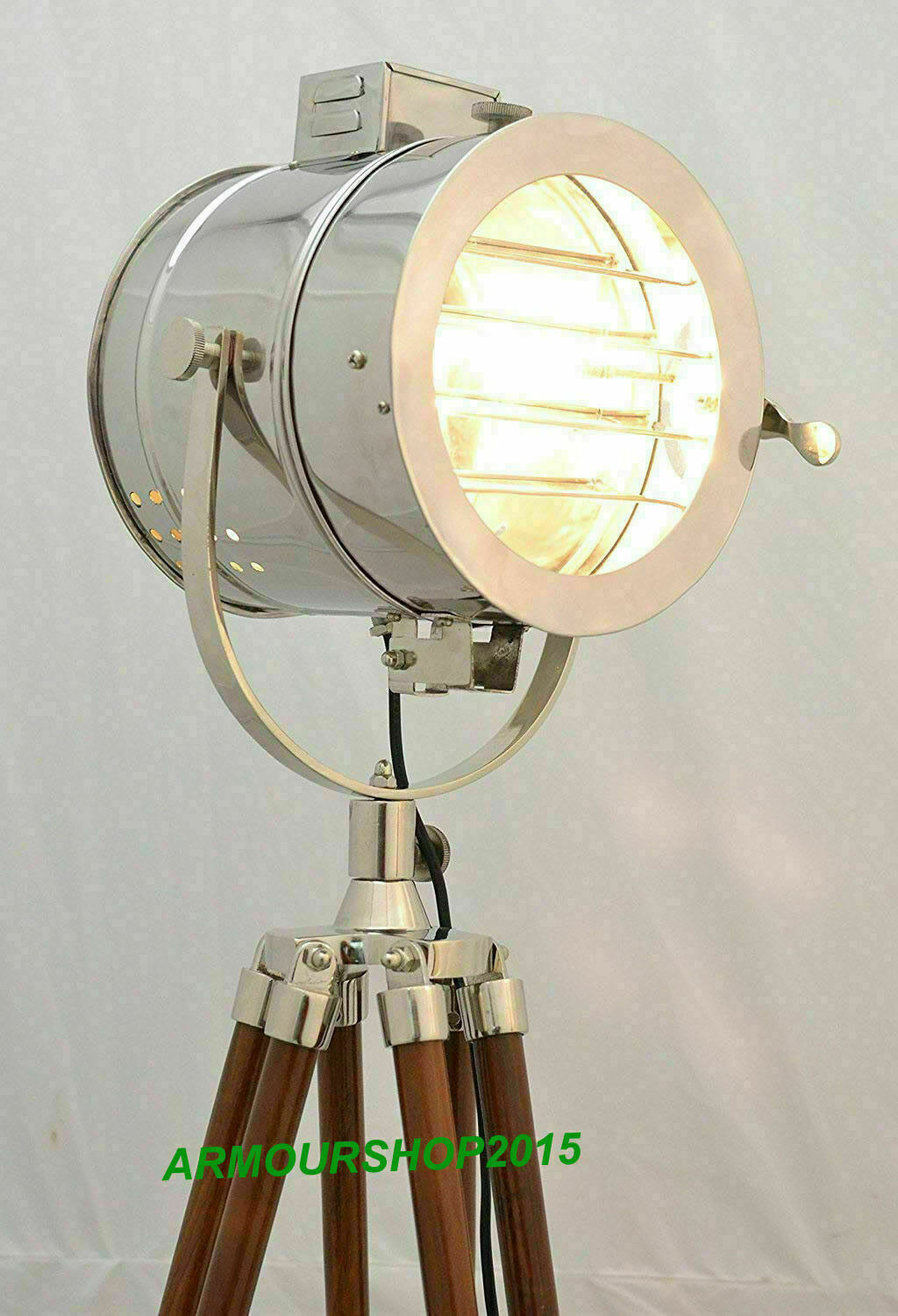 - Handmade Nautical Spot Light With Brown Tripod Stand Classical Floor Lamp Gift