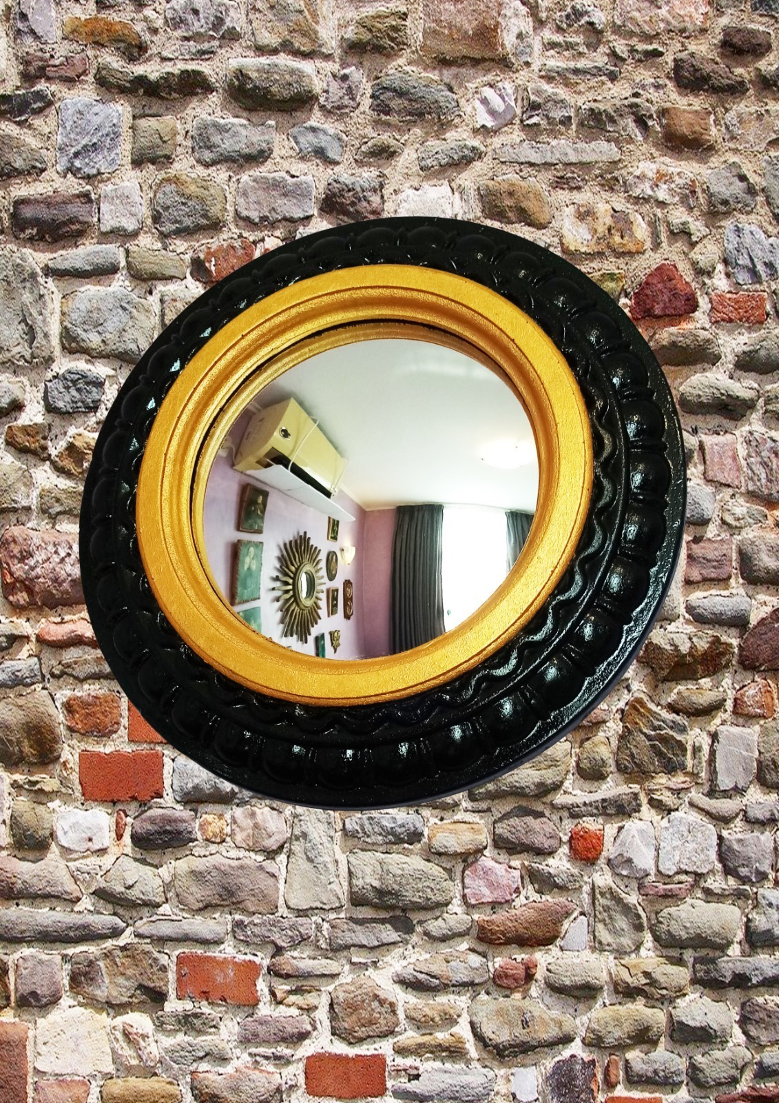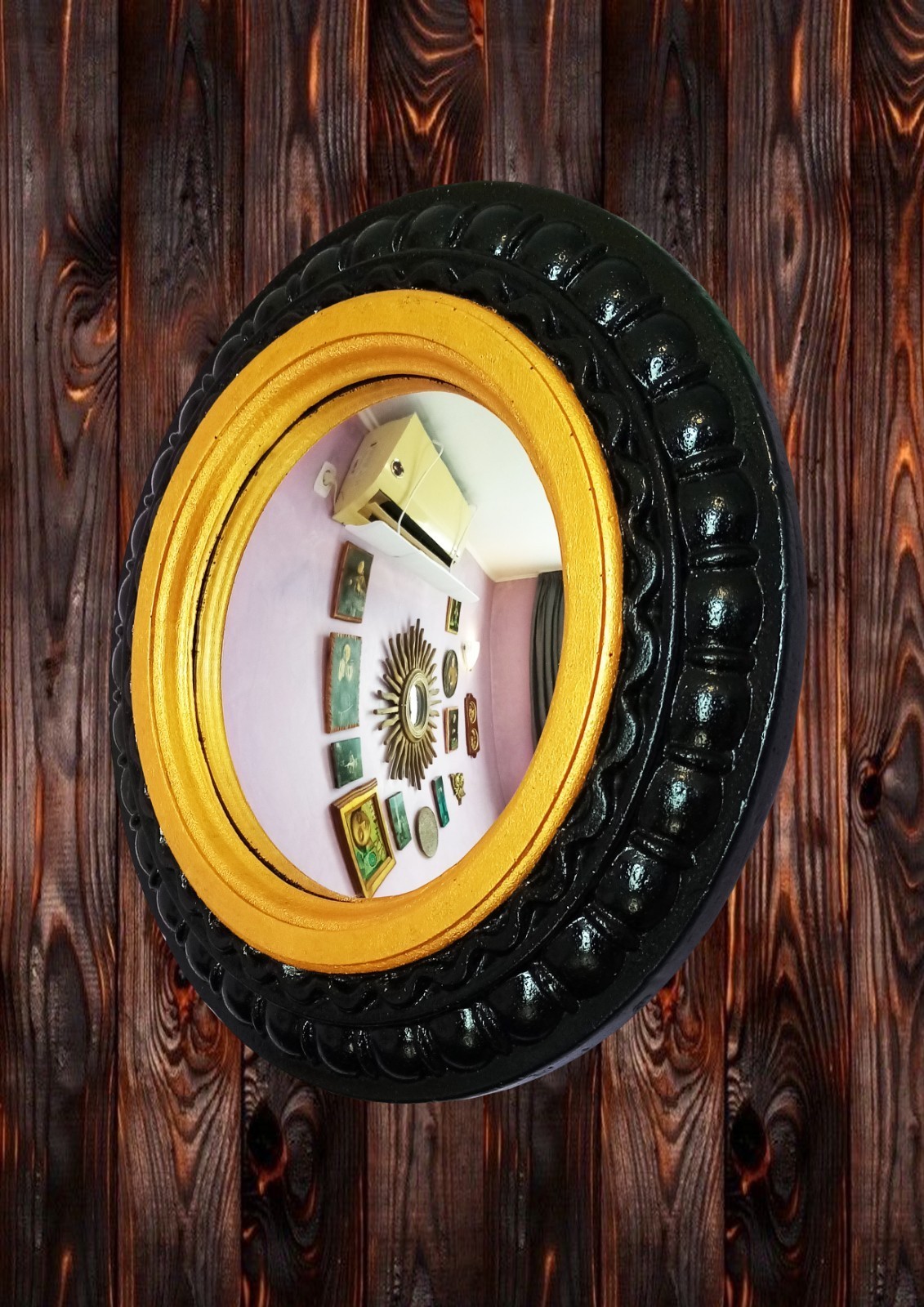 - Handmade Witch’s Eye Resin Mirror – Oval Black & Gold Frame, Mystical Gothic Wal