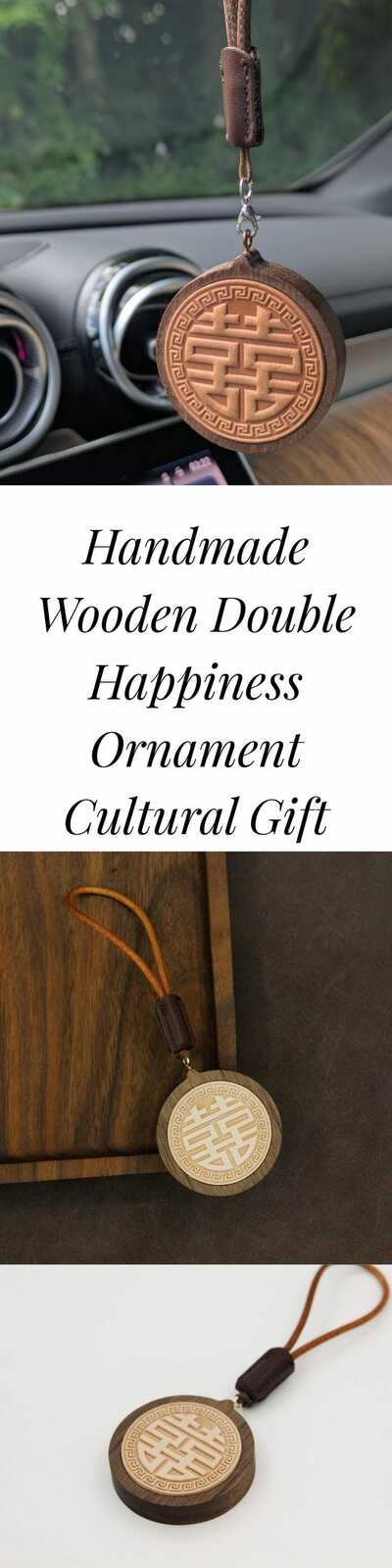 ? Handmade wooden Double Happiness ornament ? features traditional Chinese characters in a round design
