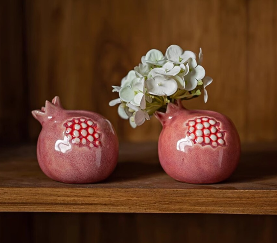The elegant hand-made ceramic craft is blended with the vibrant pomegranate form. Our hand-made ceramic pomegranate-shaped vases are the perfect works of art for your home decoration.