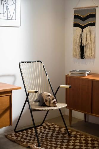 Transform your living space with this handwoven wall hanging that brings global-boho sophistication to any room. Measuring 13.8 by 27.6 inches, this Nordic modern art tapestry features striking chevron patterns in a harmonious palette of black, white, grey, and mustard that complements various decor styles. The layered textures, dynamic chevron design, and playful pompom highlights create visual movement and tactile depth, adding cozy dimension to your walls. Crafted from premium, low-shed yarns and natural wood, this lightweight tapestry comes with a sturdy wooden dowel and pre-attached cord for effortless mounting. Perfect for modern, bohemian, Scandinavian, or vintage-inspired spaces, this handcrafted piece softens modern lines in contemporary settings or enlivens midcentury rooms. Its asymmetric layers maximize visual interest while maintaining a cohesive look that works beautifully in living rooms, bedrooms, or lounge areas.