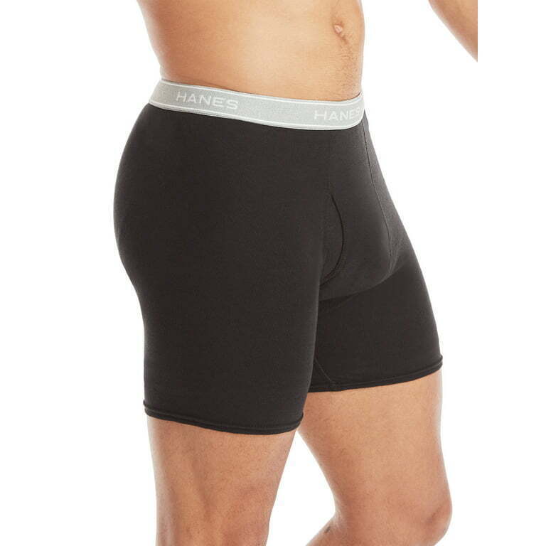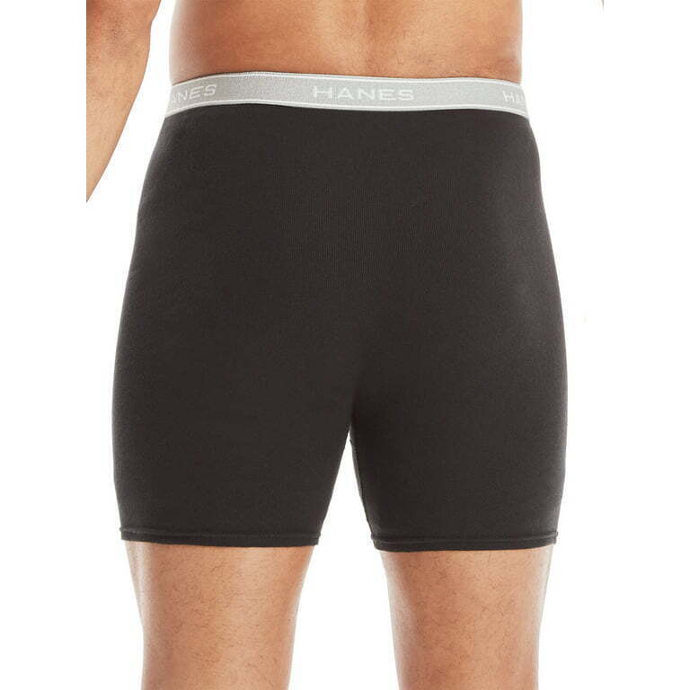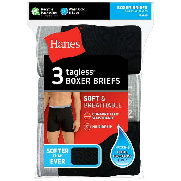 Hanes Men's Tagless cotton boxer briefs provide a soft and breathable feel. Our no ride up boxer brief keeps its shape and wicks away moisture to help keep you dry and comfortable. Available in a black and grey 3 pack.