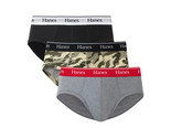 BRANDED WAISTBANDS, ASSORTED COLORS - Value 3-pack includes briefs in assorted solids and prints, including Camo, with contrasting waistbands that feature the Hanes logo.