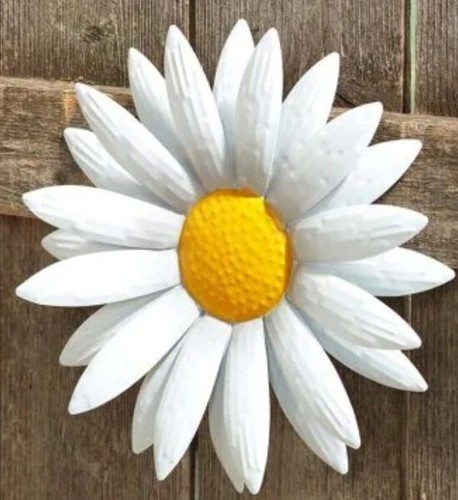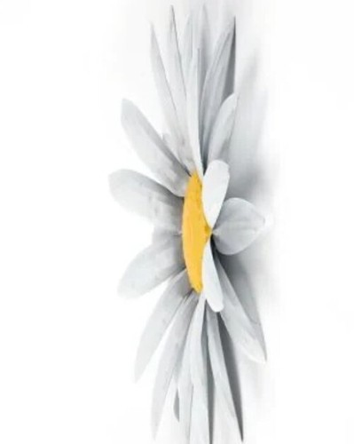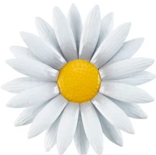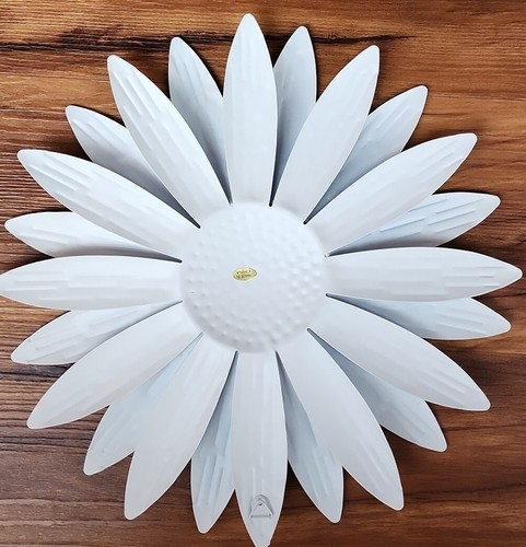 This Sale is for One (1) Wall Decoration ~ Door Hanger WHTE DAISY DESIGN Subtle texture 3-D effect 24 petals Measures approximately 12" diameter x .75" depth Metal material Triangle hook on the backside for easy hanging Hang on an interior wall or under a covered porch Metal wall flower is new in original packaging Please view photos for a good description of this item Thank you!