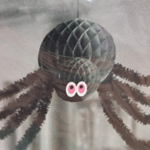 Hanging Honeycomb Black Spider Halloween Haunted House Decoration Prop. Images show actual item that will ship.