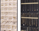 - Hanging Jewelry Organizer Storage Roll with Hanger Metal Hooks Double-Sided Jewe