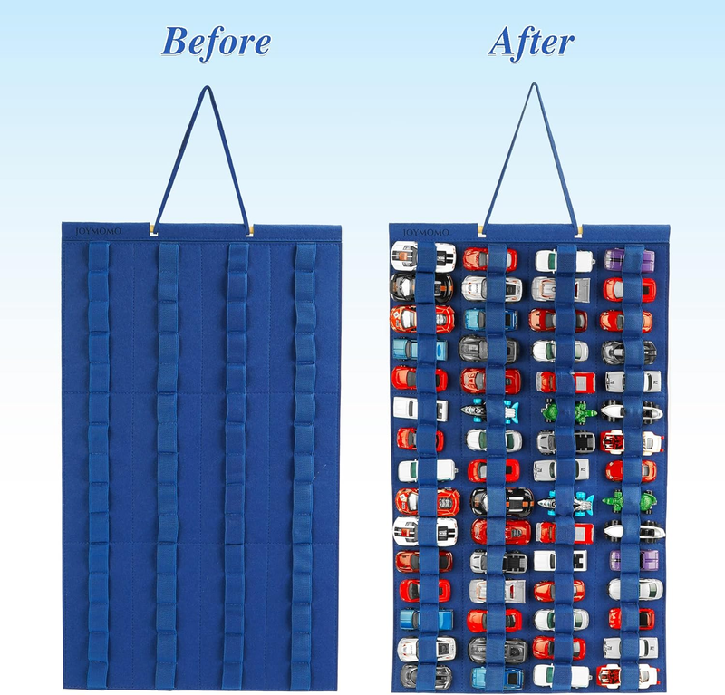 Great display way, when you have a lot of toy cars, this toy cars display case can easily solve this problem for you, the hanging organizer design makes you store and display your toy cars quickly !
