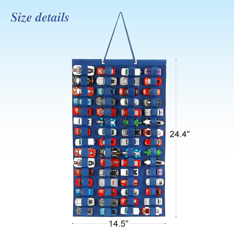 Hanging Storage Organizer for Toy Cars Felt Display Case Hold up 60 Toy Cars (Without Accessories)(Blue)
