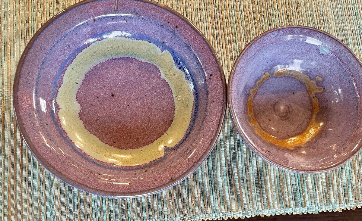 - Hanselmann Pottery Signed Studio Ceramic Handcrafted Multicolor 2 Bowls
