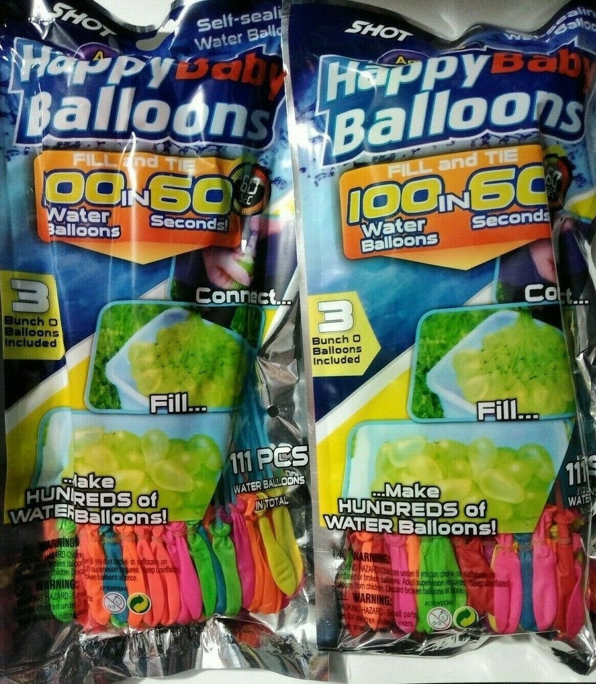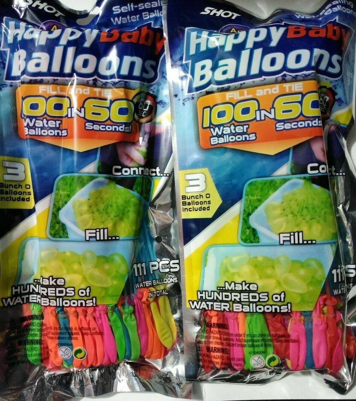 You are Buying a Brand New And factory Sealed Happy Baby Water Balloon fill And tie 300 in 60 Seconds Connect and Fill Lots of colors of Balloons. 300 per Bunch Of Happy Baby Water Balloon. Ages 3+ Suitable for. Secure Hose Attachment To Fill up your Water Balloons. This is the Easiest way to Full up your Water Balloons.