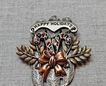 - Happy Holidays Candy Cane Sled Silver Tone Pin Brooch 2'' Christmas, Vintage