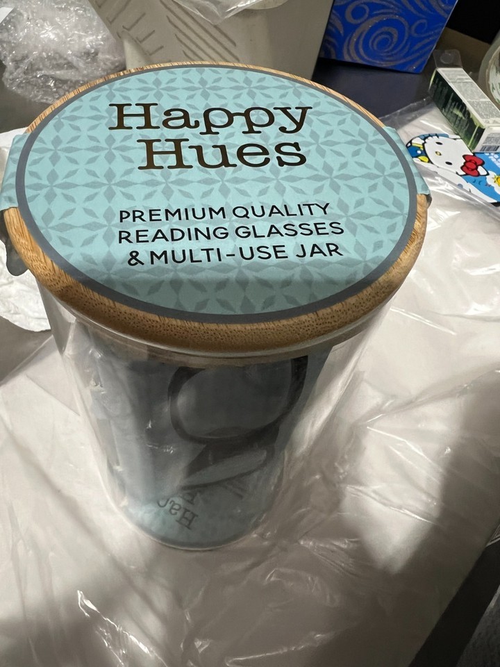 - HAPPY HUES 3 PACK SET PREMIUM READING GLASSES READERS in Glass Jar +2.50