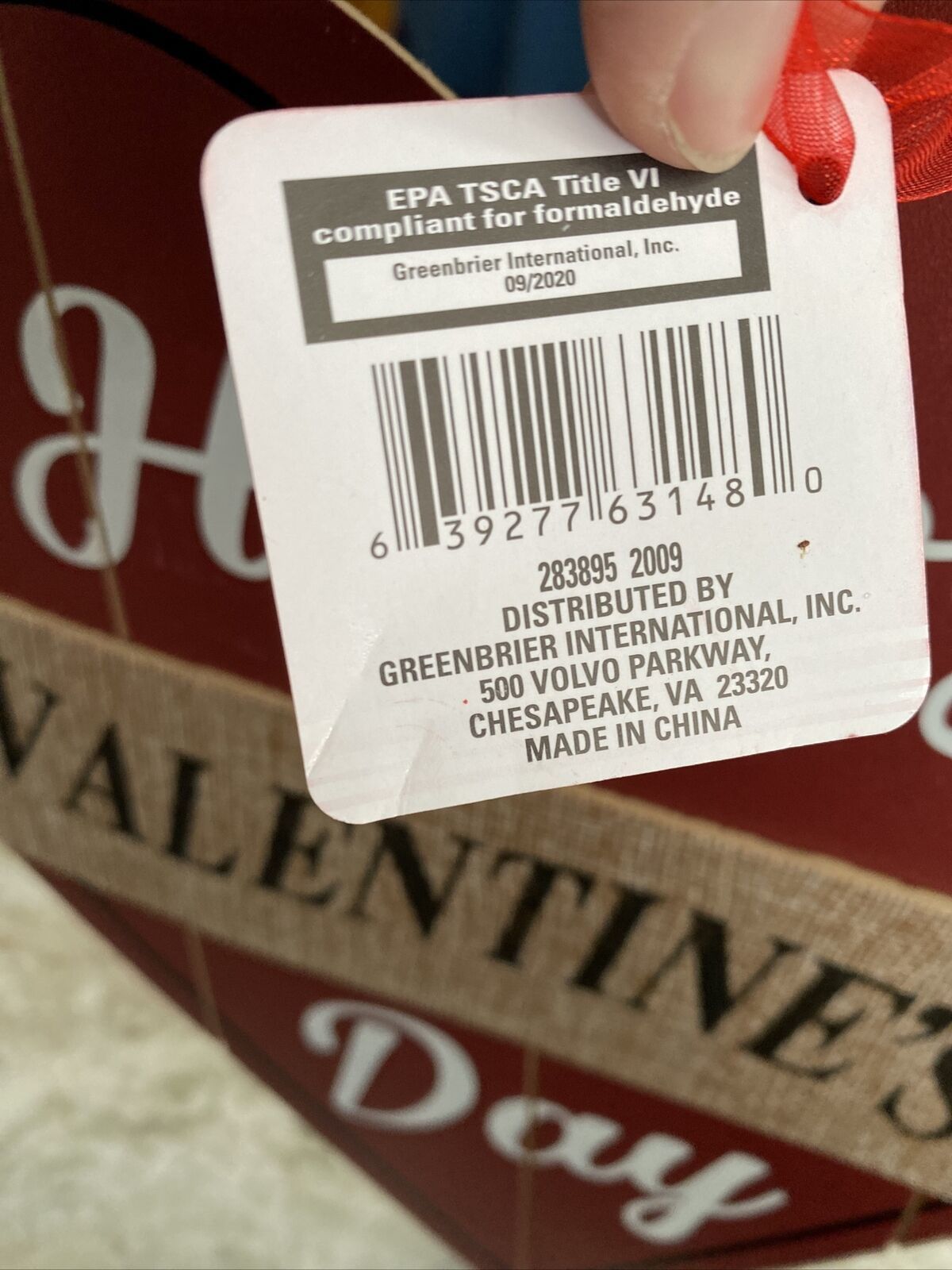 Happy Valentine's Day Heart Shaped Sign 11" X 12”Center Banner Piece NEW!
