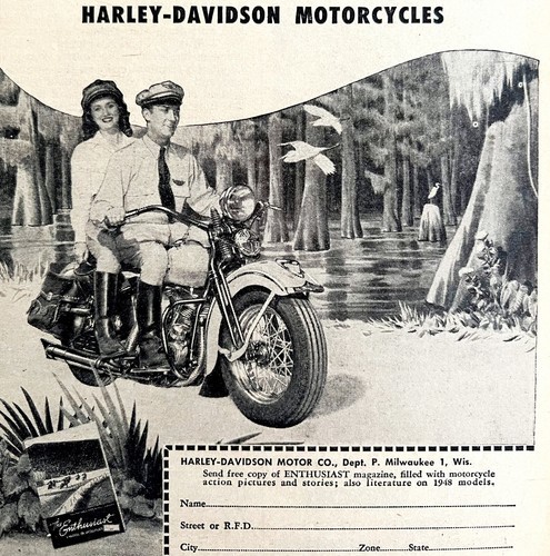 Harley Davidson Advertisement 1948 Everglades Swamp Scene Motorcycle LGBinHD2