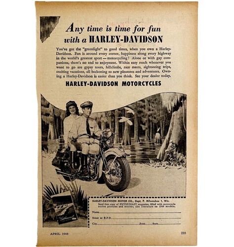 Primary image for Harley Davidson Advertisement 1948 Everglades Swamp Scene Motorcycle LGBinHD2