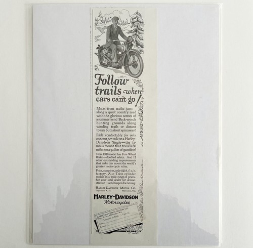 Primary image for Harley Davidson New 28 Model Advertisement 1928 Motorcycle Follow Trails DWCC10