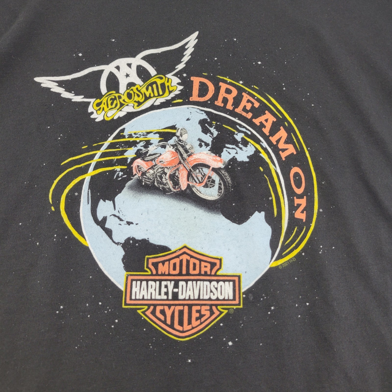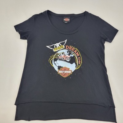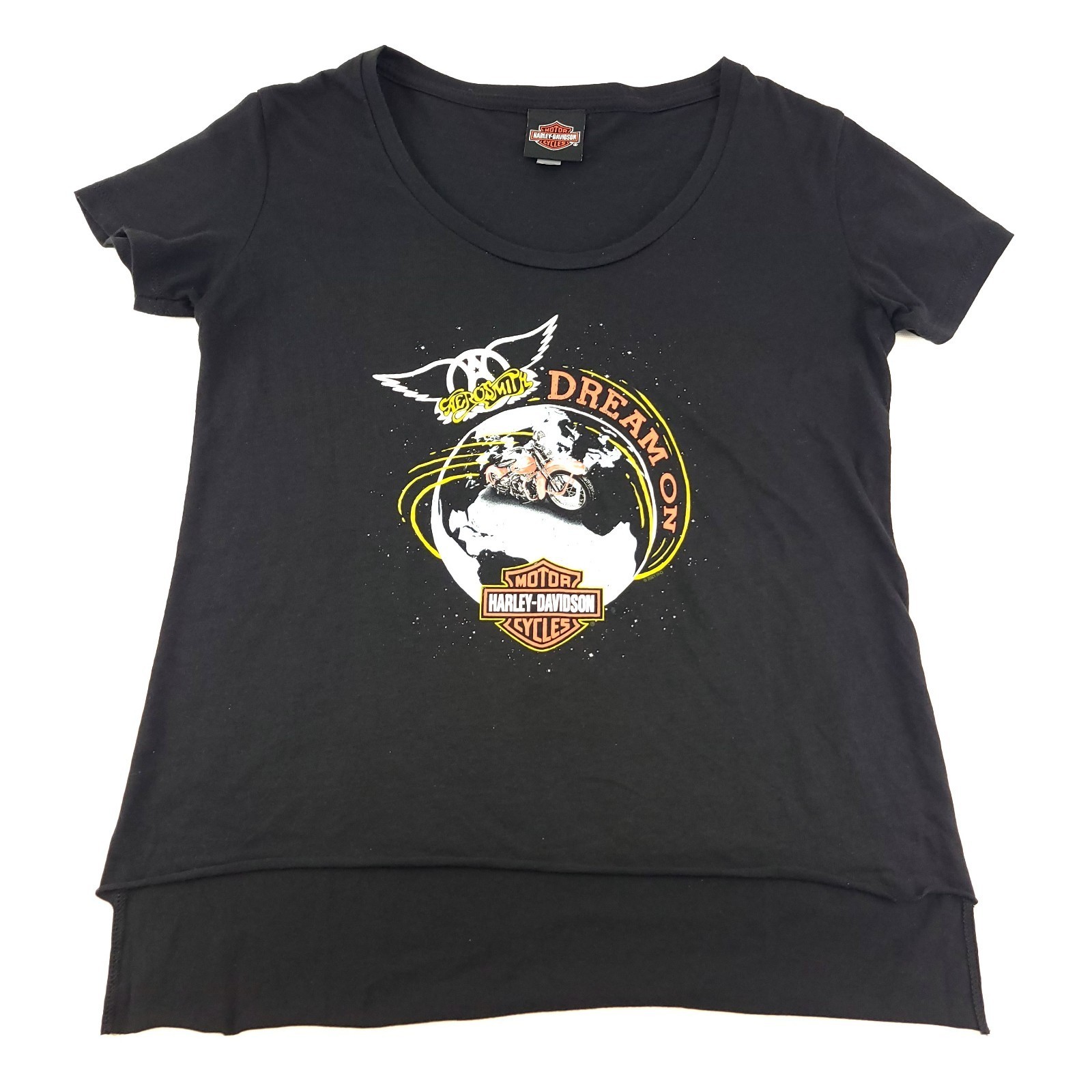 Harley Davidson Womens Sz XS Black T Shirt Aerosmith Dream On Motorcycle Graphic