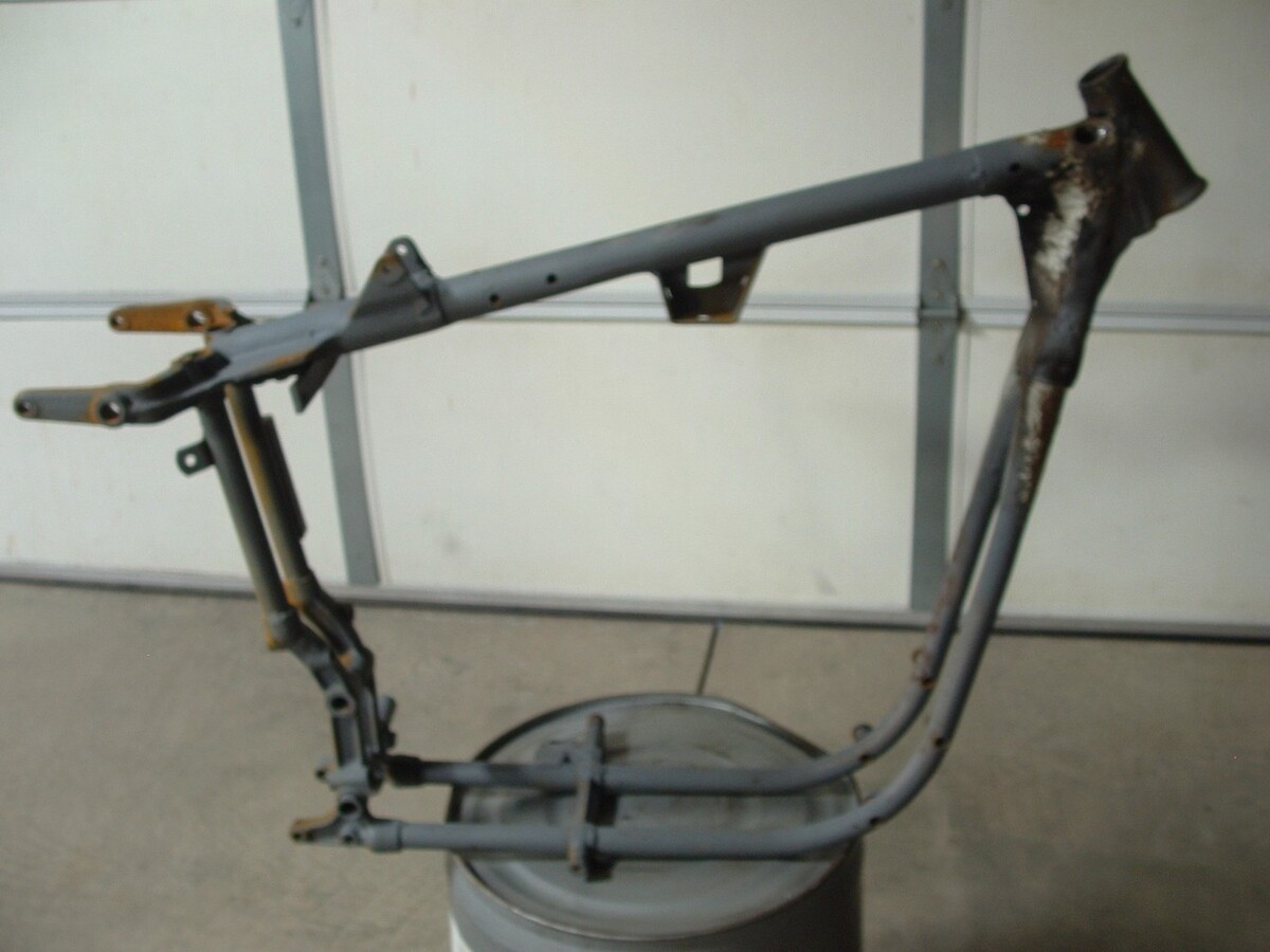Harley sportster frame. Don't know the history of this frame. Got it in a parts buy out. Don't know the year. Pictures should help with that. Appears that the neck was altered/welded. The rest of the frame appears to be good to go. Check the pictures. Surface rust. No damaging rust. Bill of sale with this frame. Local pickup at this time. Zip code 14004. Call Tim. seven- one- six nine-three-seven three-nine-zero-eight. Leave a message and I will get right back to you.