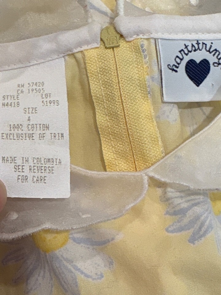 This charming Hartstrings vintage dress in 4T size showcases a vibrant yellow daisy print, topped off with a delicate lace collar. Perfect for your little princess's spring and summer outings. ? Vintage Hartstrings dress ? Size: 4T ? Yellow daisy print ? Adorned with a lace collar ? Ideal for spring and summer Size: Girls 4T Condition: Pre-Owned Like New