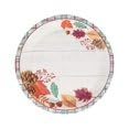 Transform your fall gatherings with this delightful set of harvest-themed paper plates and napkins. The collection includes two packs of 16 plates (32 total), each measuring 8.75 inches, perfect for serving your favorite seasonal dishes. Complementing the plates are two sets of 24 two-ply napkins (48 total), sized at 6.5 x 6.5 inches. The beautiful harvest leaves print design features a charming blend of white, orange, blue, and green colors that capture the essence of autumn. These disposable dining essentials are ideal for Thanksgiving celebrations, fall festivals, or casual autumn get-togethers. The semi-glossy plates are sturdy enough to hold your festive meals, while the soft 2-ply napkins provide both functionality and style. Whether you're hosting an intimate family dinner or a larger seasonal gathering, this set offers both convenience and seasonal charm. With a maximum order quantity of 4 sets, you can stock up for all your fall entertaining needs. Additional Details ------------------------------ Product description: Transform your fall gatherings with this delightful set of harvest-themed paper plates and napkins. The collection includes two packs of 16 plates (32 total), each measuring 8.75 inches, perfect for serving your favorite seasonal dishes. Complementing the plates are two sets of 24 two-ply napkins (48 total), sized at 6.5 x 6.5 inches. The beautiful harvest leaves print design features a charming blend of white, orange, blue, and green colors that capture the essence of autumn. These disposable dining essentials are ideal for Thanksgiving celebrations, fall festivals, or casual autumn get-togethers. The semi-glossy plates are sturdy enough to hold your festive meals, while the soft 2-ply napkins provide both functionality and style. Whether you're hosting an intimate family dinner or a larger seasonal gathering, this set offers both convenience and seasonal charm. With a maximum order quantity of 4 sets, you can stock up for all your fall entertaining needs.