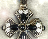 ABOUT THE CROSS AMULET: 1 1/2" in STERLING ONYX AND CRYSTAL TEMPLAR CROSS WITH A 28" CHAIN
