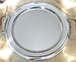 ABOUT THE TRAY 20" IN DIAMETER SILVER ANTIQUE TRAY WITH WOODEN HANDLES