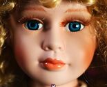 You will be receiving a beautiful porcelain doll. Her body is stuffed and her head and limbs are made of porcelain. Milifi is around 14-16 inches tall. She has long, wavy blonde hair topped with a bow. She has intense blue eyes. She is wearing a mostly orange, multi-hued dress with frills, flowers, and leaves.