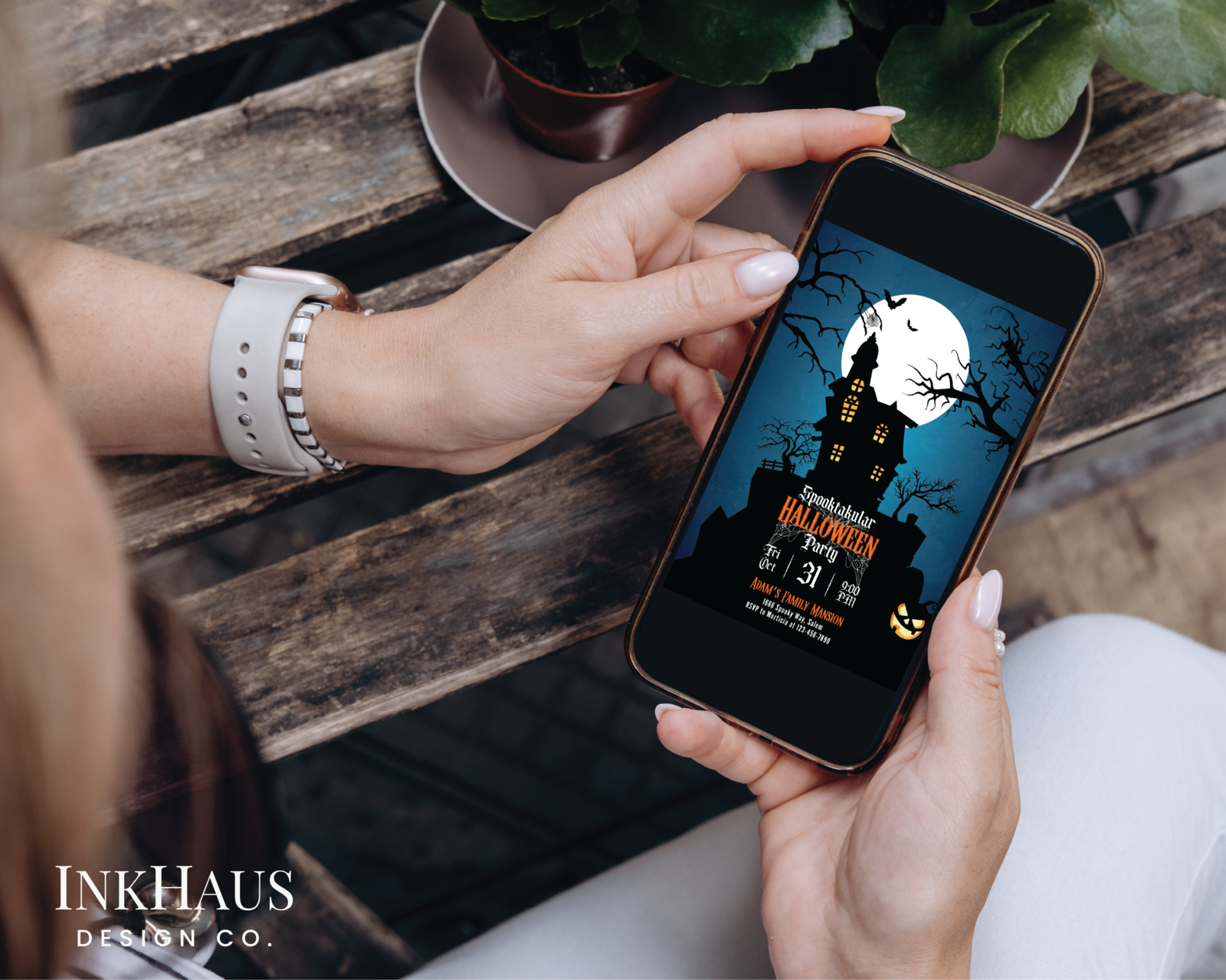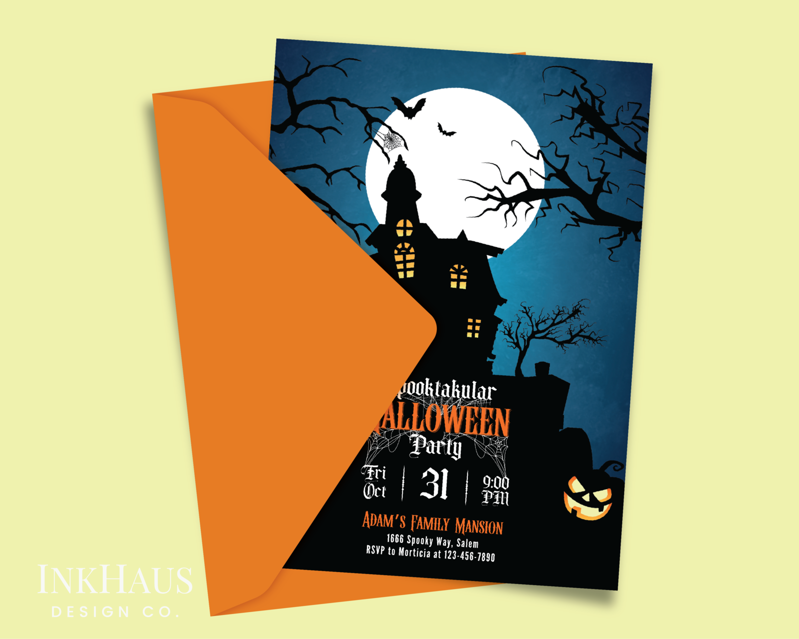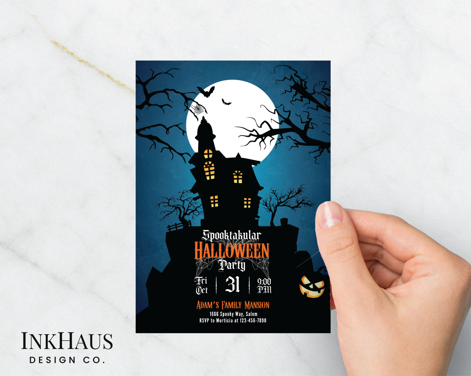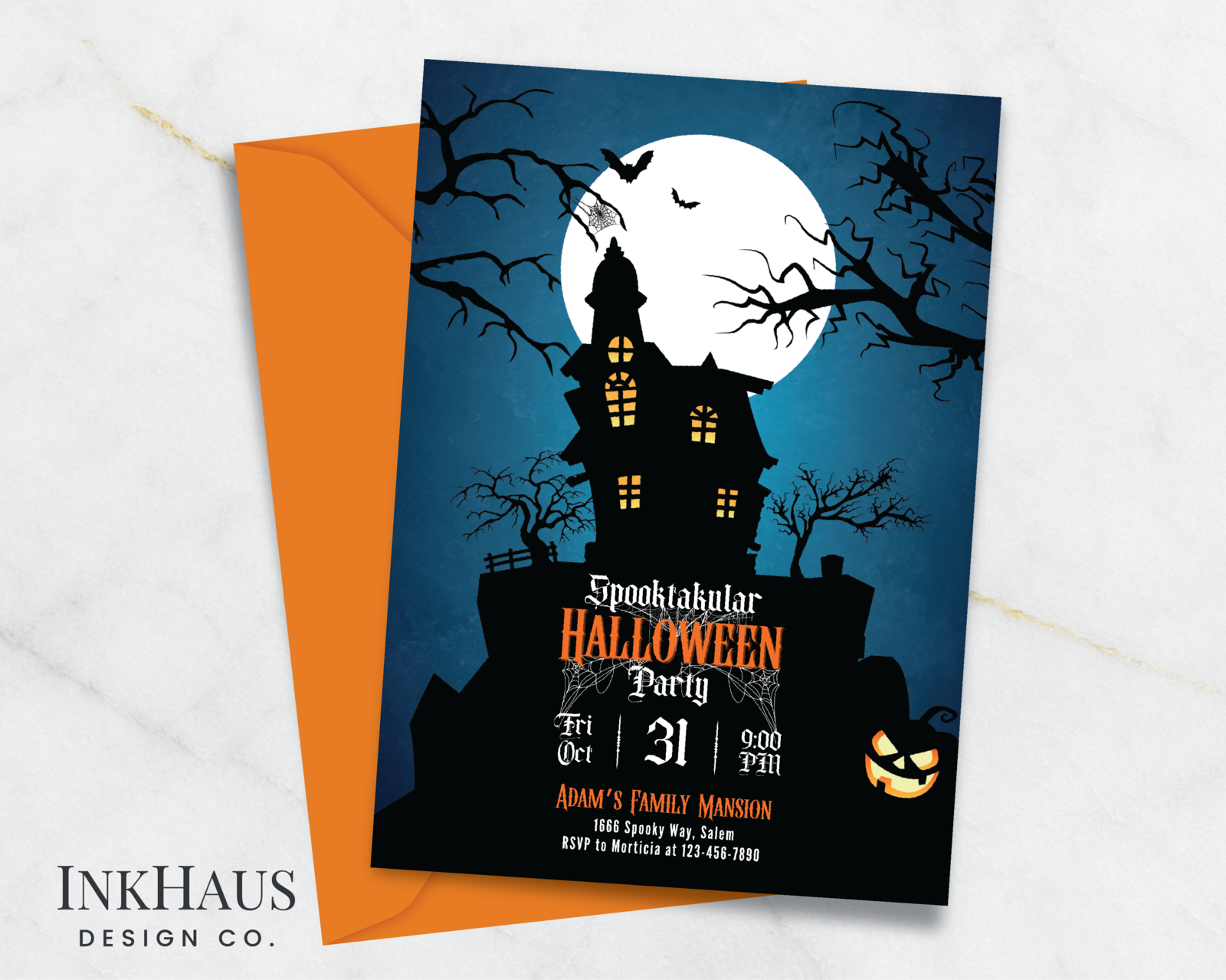 Haunted House Halloween Party Invitation: Editable Canva Digital Download