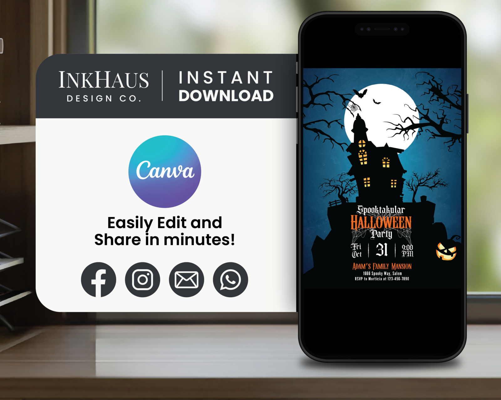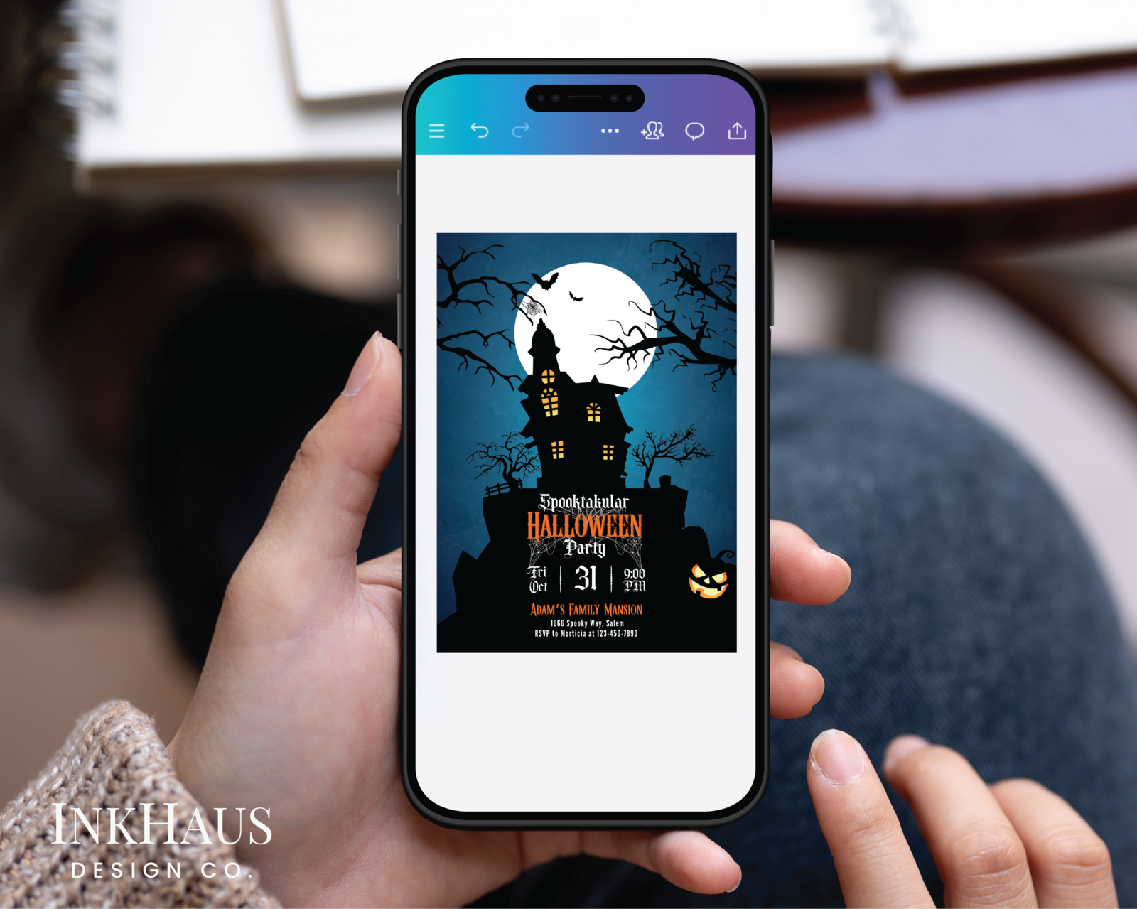 - Haunted House Halloween Party Invitation: Editable Canva Digital Download