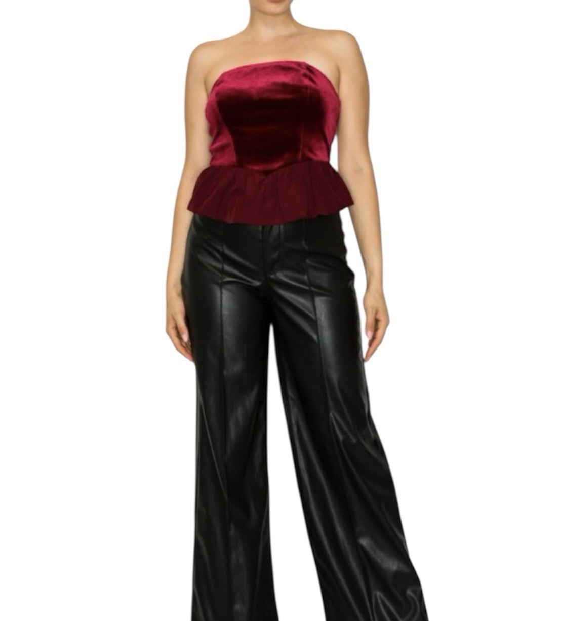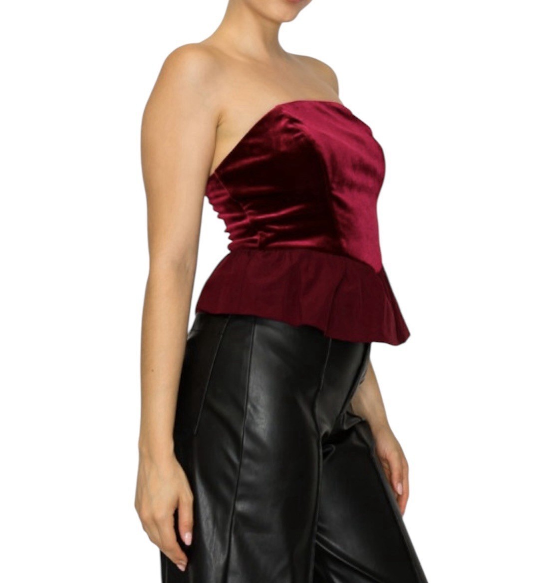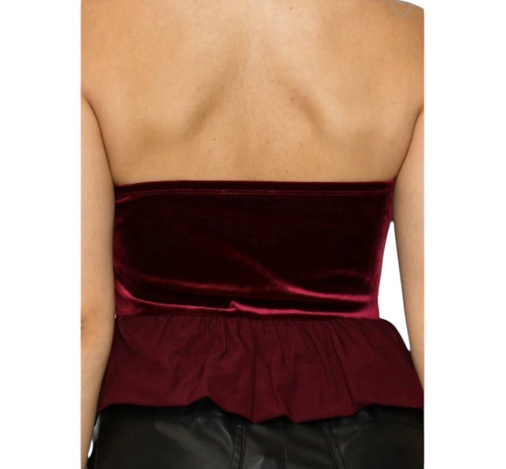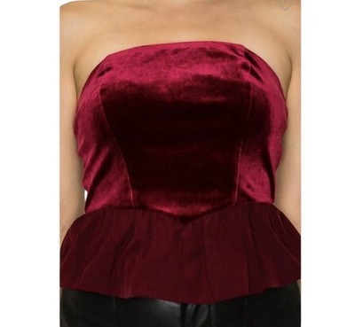 - Haute Monde Velvet Peplum Top Size M Burgundy Strapless Ruffle Goth Party NWT