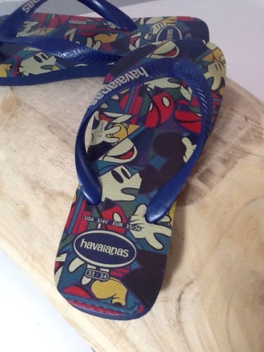 Havaianas size 33-34 USA 3/4Y EUR 35-36 vintage like Disney Mickey navy blue new without tags. Light soil on bottom due to store shelf.