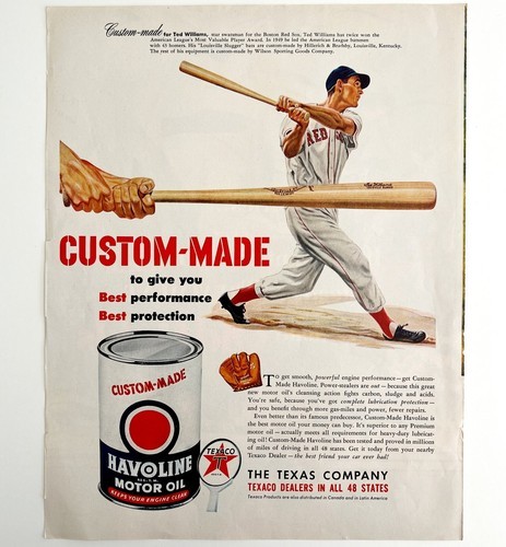 Havoline Motor Oil Texaco Ted Williams 1951 Advertisement Louisville Bat HM1B