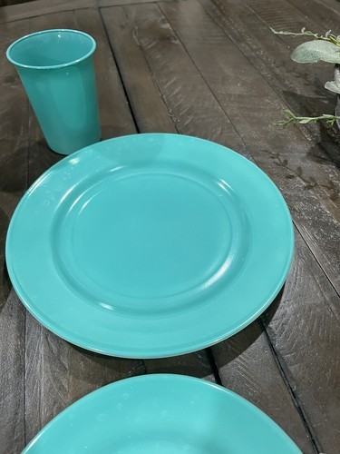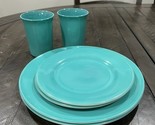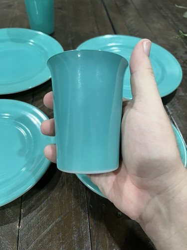 - Hazel Atlas Ovide Aqua Turquoise Platonite Dinner Dessert Plate Tumbler Set Of 2