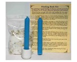 Add to the healing qualities of your bath waters with this Healing Mini Bath Kit, which provides you with all you need to bath in ritual healing magick. For assisting in quick healing of ailments and the prevention of illness in all forms, physical, spiritual and mental. Candle holders and candle colors may vary.