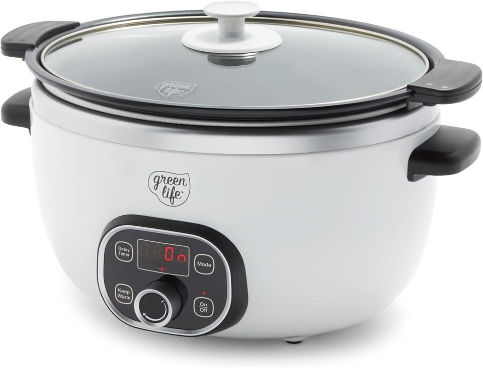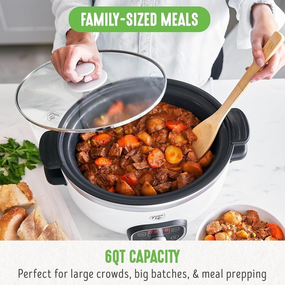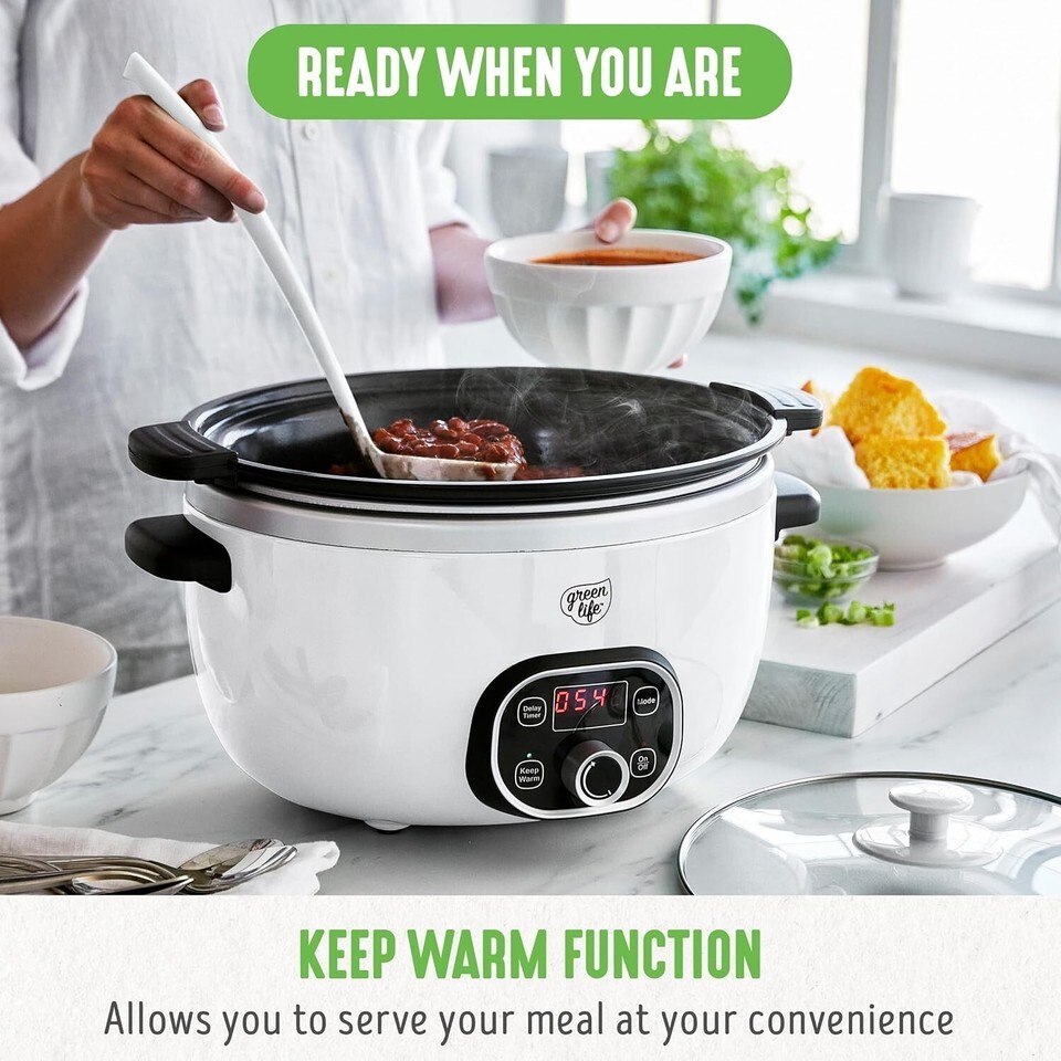 - Healthy 6 Quart Ceramic Slow Cooker - Programmable, Nonstick & Dishwasher Safe
