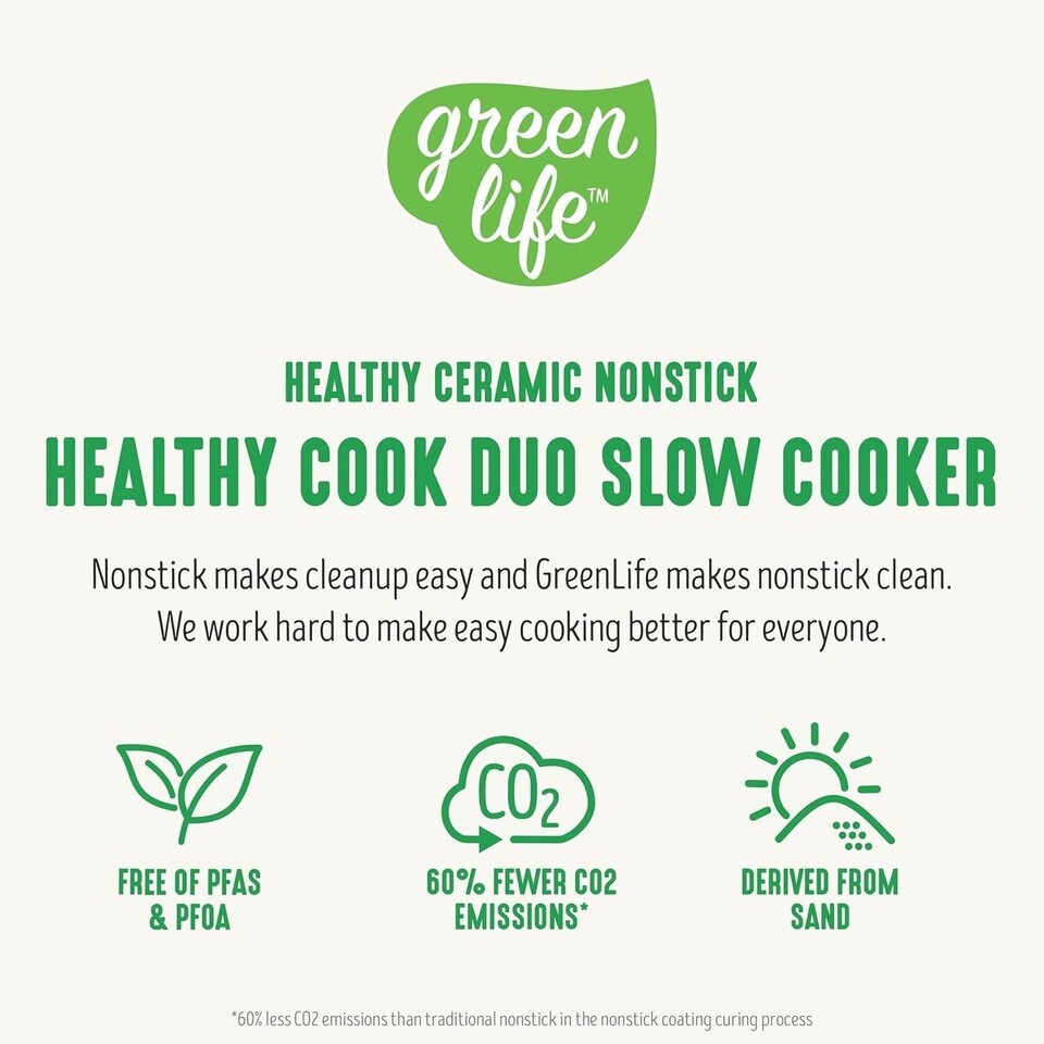 Experience the luxury of effortless cooking with the Healthy Cook Duo. Designed for those who enjoy flavorful, nutritious meals without the hassle, this slow cooker is the epitome of elegant functionality. The generous 6-quart capacity allows you to prepare delightful family-sized meals, while the safe, toxin-free ceramic nonstick interior ensures each dish is as healthy as it is scrumptious.