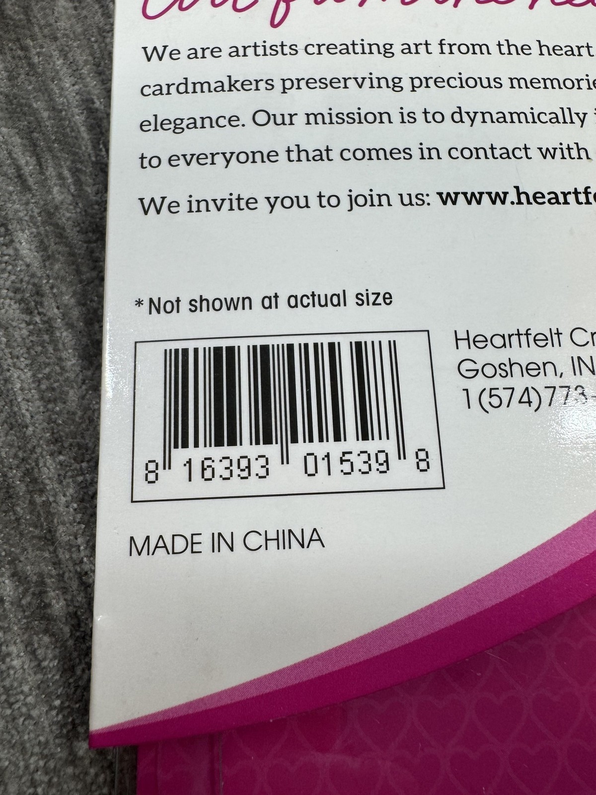 Brand markings: Heartfelt Creations logo; "Art from the heart" tag line