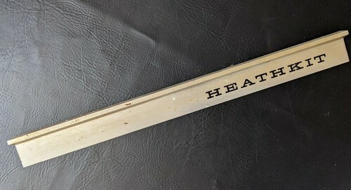 A vendre est un badge de haut-parleur Heathkit d'occasion en argent qui mesure 22 "x 2".