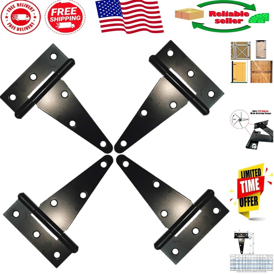 Heavy Duty 4-Inch Rustproof Tee Hinges - 4 Pcs Carbon Steel for Doors Gates