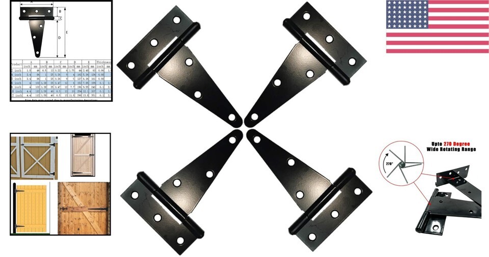 Crafted from carbon steel, these heavy-duty tee hinges are designed for both indoor and outdoor use, offering exceptional functionality and style. Versatile and reliable, they are ideal for a variety of applications, including: