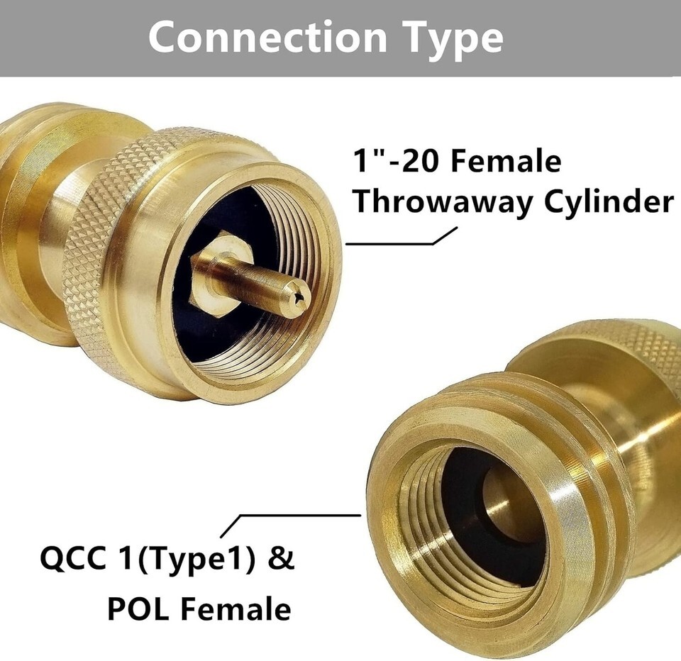 Compatible with 1"-20 female throwaway cylinder x QCC-1 and female P.O.L. ACME male POL female threads, fitting for QCC1/POL hose and regulator.