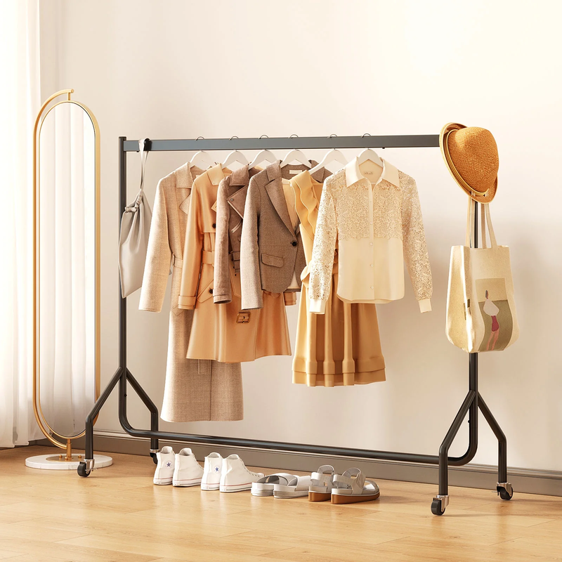 Flexible Movement Stable Fixation:The rolling clothes racks have 4 wheels that can rotate 360 degrees, which ensure flexible movement of the hanger. Additionally, 2 of the wheels are conveniently lockable, allowing you to effortlessly secure or release them with your feet. These wheels are crafted to be both quiet and floor-friendly, so you won't have to worry about noise or scratches as you move your rack around.